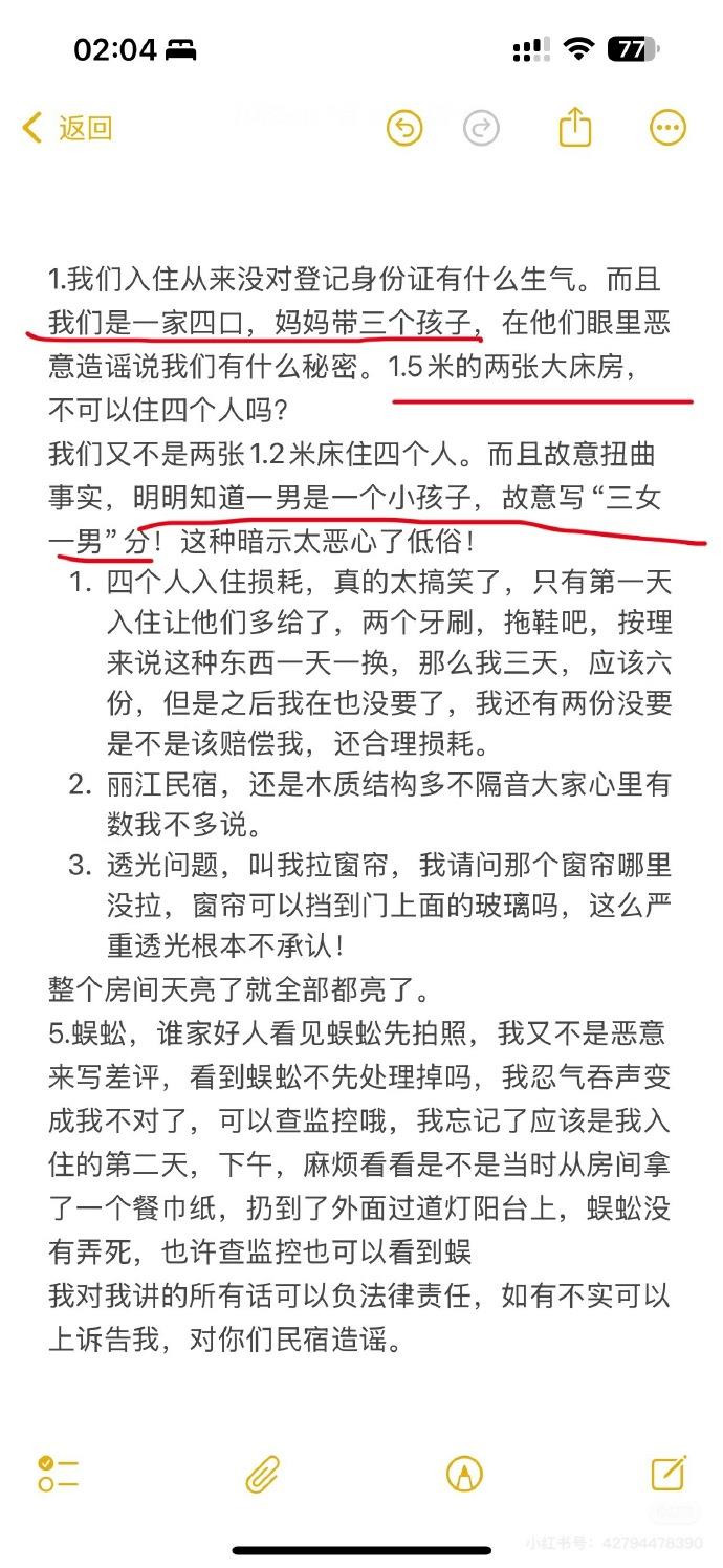 但是这家民宿的做法却匪夷所思,他们解决差评的方式竟然是通过造消费者的“黄谣”来转移矛盾,将母亲与三个孩子描述成“三女一男”,充满恶意揣测和低俗暗示,试图在网络上对顾客进行污名化。这种做法不仅暴露了商家的傲慢,更折射出某些民宿经营者法治意识的薄弱,服务意识的欠缺。