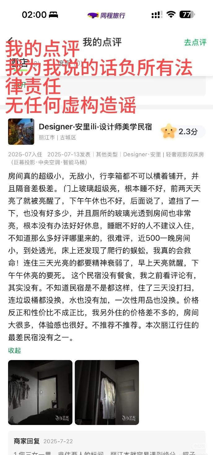 这种不怀好意的手段不仅无法掩盖民宿可能存在的过失,反而会激起公众的反感,招致更猛烈的舆论反噬。毕竟,在信息传播迅速的当下,消费者对这种不尊重人的商家,可以说是“零容忍”。