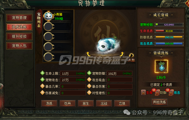 一个人最多只能拥有五个宠物,所以尽量捕捉等级高的BOSS,捕捉后可以对宠物进行升级和洗练,消耗的材料打怪就掉,非常简单。洗练这个玩法比较看脸,随着宠物等级的升高,宠物增加的属性会逐步开放,洗练的资质会比较随机,洗出比较高的就先锁定。宠物不仅能参站,还能与人物合体,合体后该宠物不能出战,但人物的属性会增加。