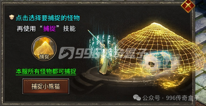 主线任务只是一个成长的方向引导,跟着走就行。宠物是这个服的重点玩法。前面说的熊猫,上线就送,可以跟着刷怪。这里注意一下,宠物是可以提升的,有兄弟说这个熊猫不要晋升黄金,黑白色的防御高!这个服的宠物也不像之前玩过的,需要刷怪开蛋,这个都直接抓的!英雄人物面板技能那一栏,有一个捕捉的技能,整个服里,所有的怪物,只要你看上了,就能把它捕捉成你的宠物!