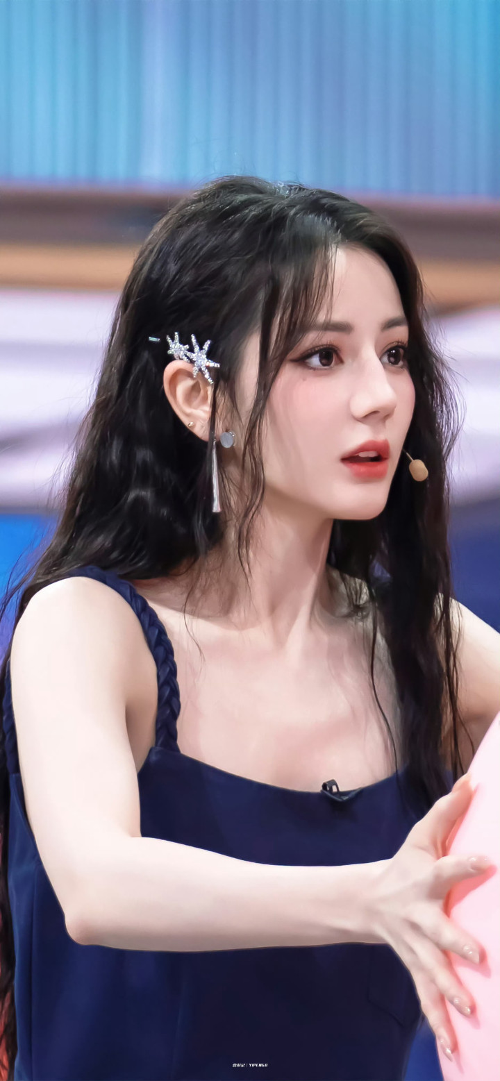 迪丽热巴深海蓝焰吊带杀!卷发红唇微漾,一侧发卡锁尽慵懒风情
