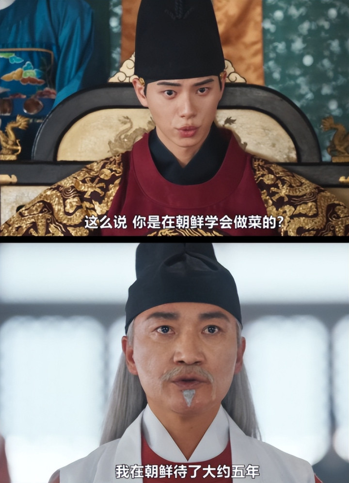 剧中,有一个片段是明朝大厨与朝鲜师比拼手艺,要知道韩餐的整体水平一直被调侃连“火锅店小料台”都比不过,但在剧中却成了明厨的“祖师爷”,甚至把明朝厨师刻画成了“小偷”。