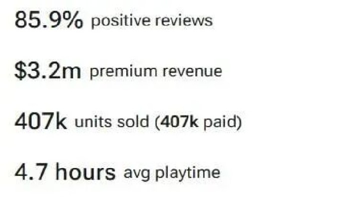 VGI估算,游戏首周流水已来到300万美元(约合2000万人民币)量级,销量已突破40万份: