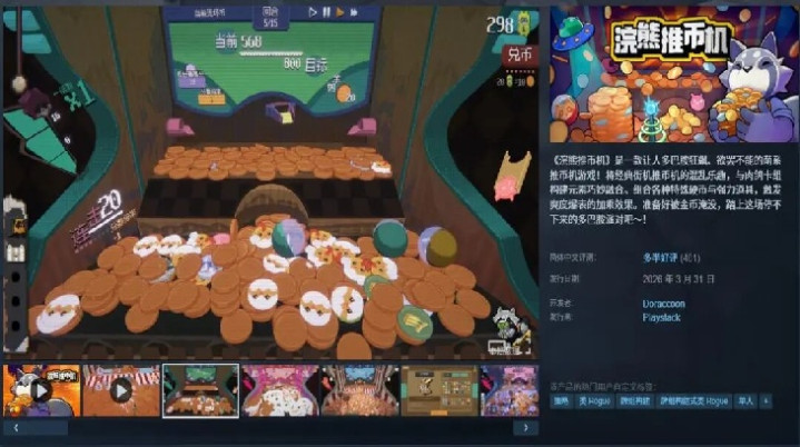 这意味着它天然适合直播、短视频和社区传播。很多Steam爆款其实都具备这个特点:既适合自己反复玩,也适合别人围观。前者解决销量,后者解决扩散。《浣熊推币机》显然同时占到了。