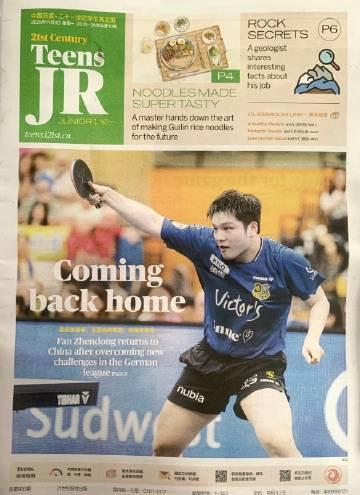 虎扑11月03日讯近日,《21世纪英文报》(中国日报社旗下英文媒体)以封面人物专题报道樊振东,聚焦他在德国乒乓球联赛(德甲)效力期间的成长与突破。