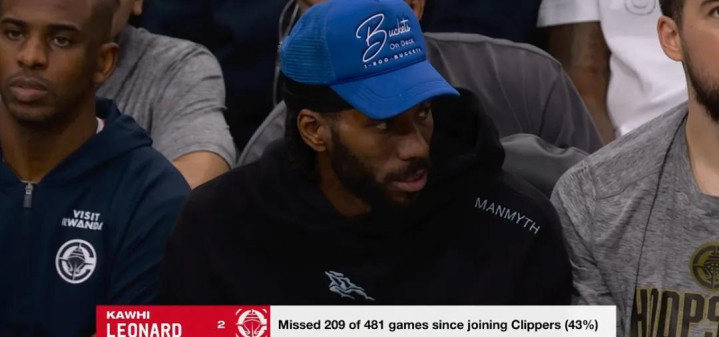 据统计,伦纳德自加盟快船以来已缺席209场比赛,休战率竟然高达43%,差不多一半时间躺在医院里面。
