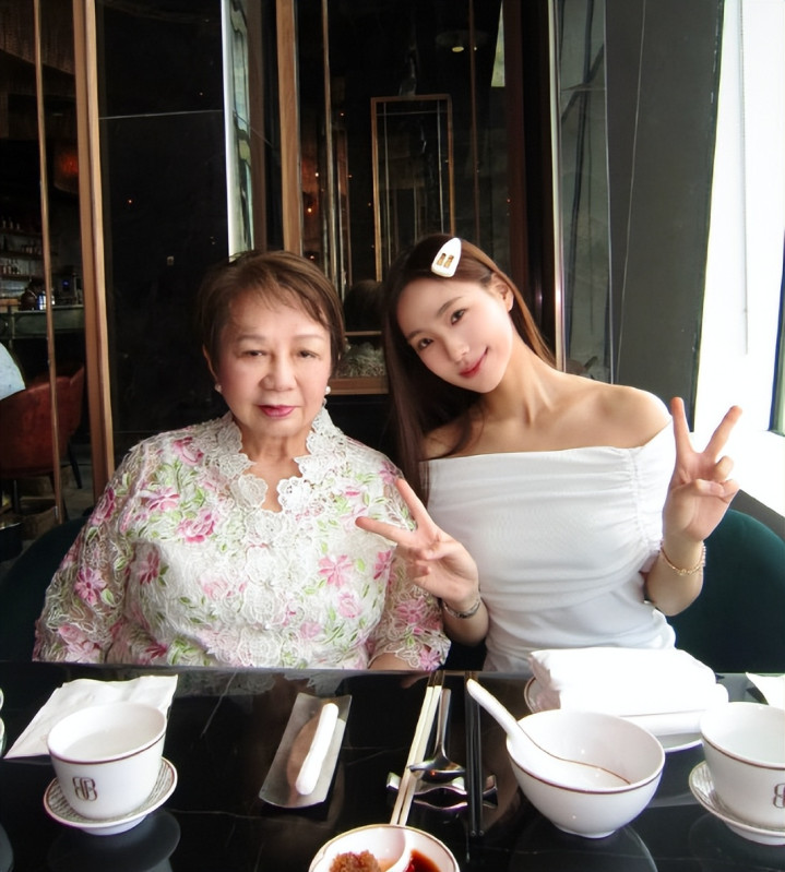 罕见露面的奶奶在照片中穿着绣花上衣,气质端庄,同框画面十分温馨。