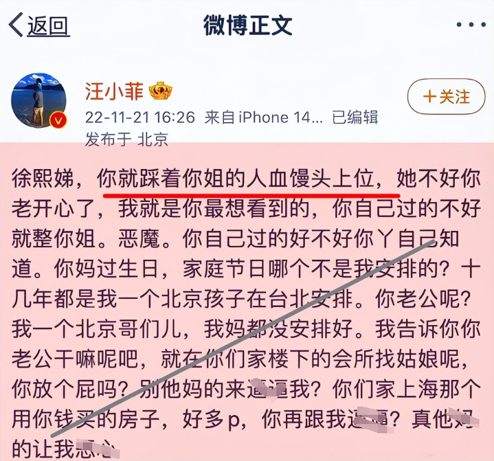 曾被汪先生斥责,认为这是在消费姐姐博取关注。
