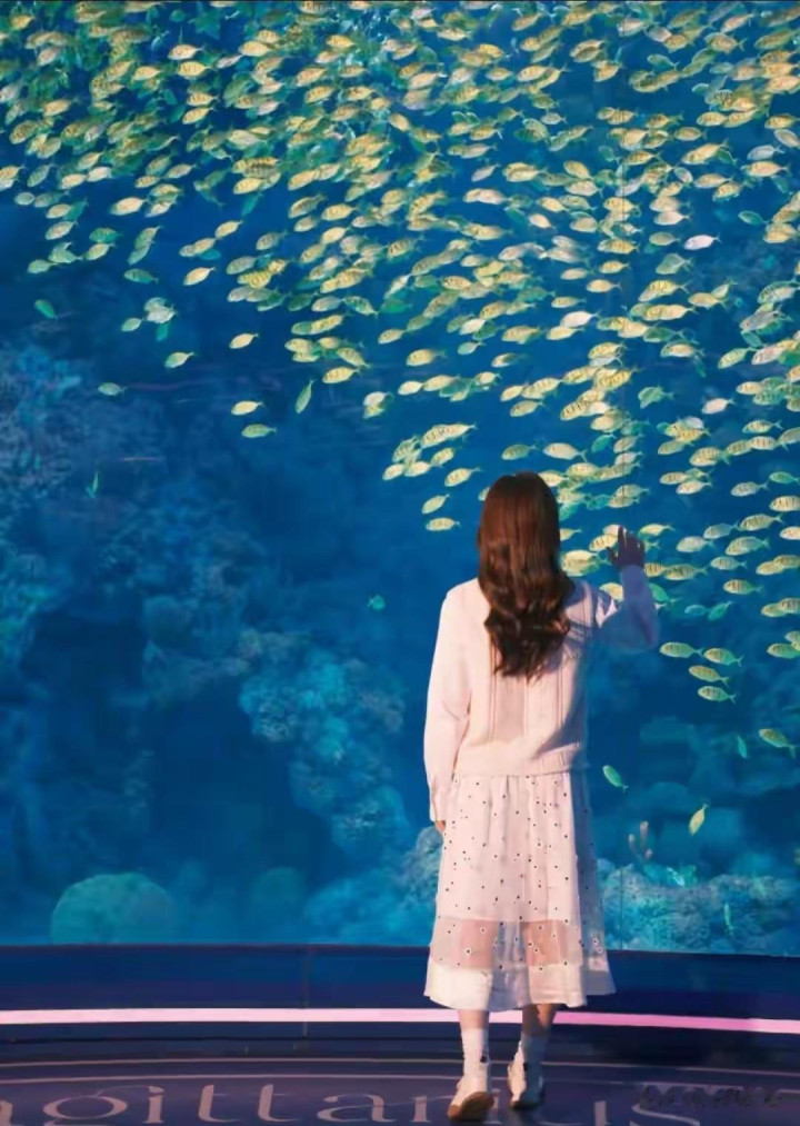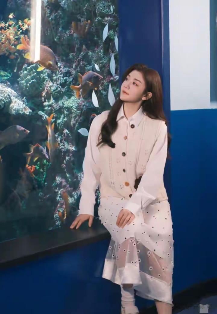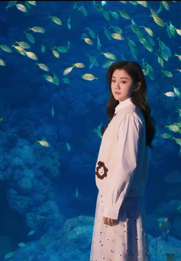 陈梦置身梦幻水下世界,被成群鱼儿环绕,甚至游成“梦”的形状,童话感直接拉满! 她一身白系穿搭,温柔卷发配甜美笑容,生图皮肤透亮,站在海洋生物旁,温婉大气的劲儿太戳人了。