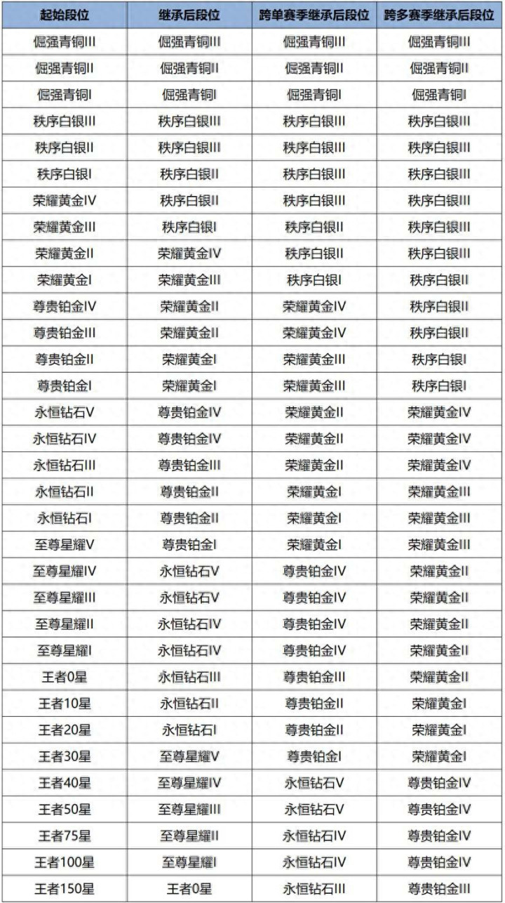 赛季更新后,玩家的排位赛段位也将会重置,根据这个赛季的段位,在新赛季将会分配不同的起始段位。
